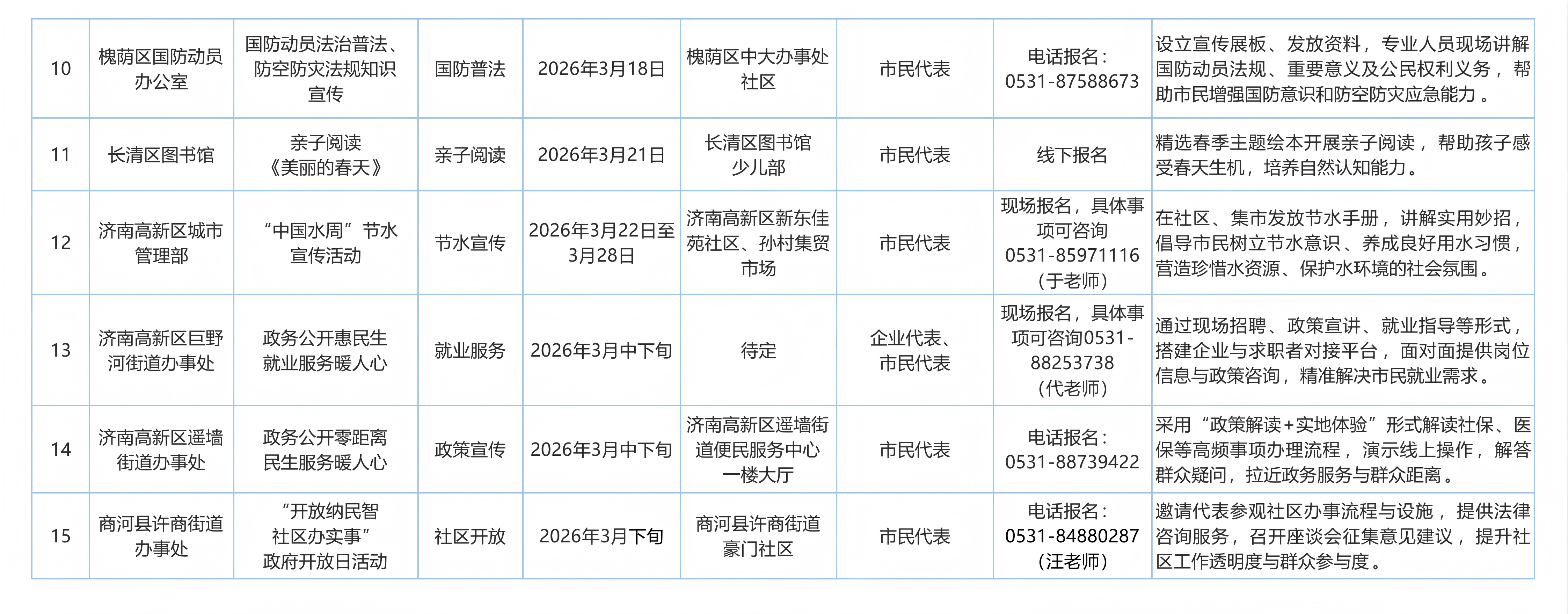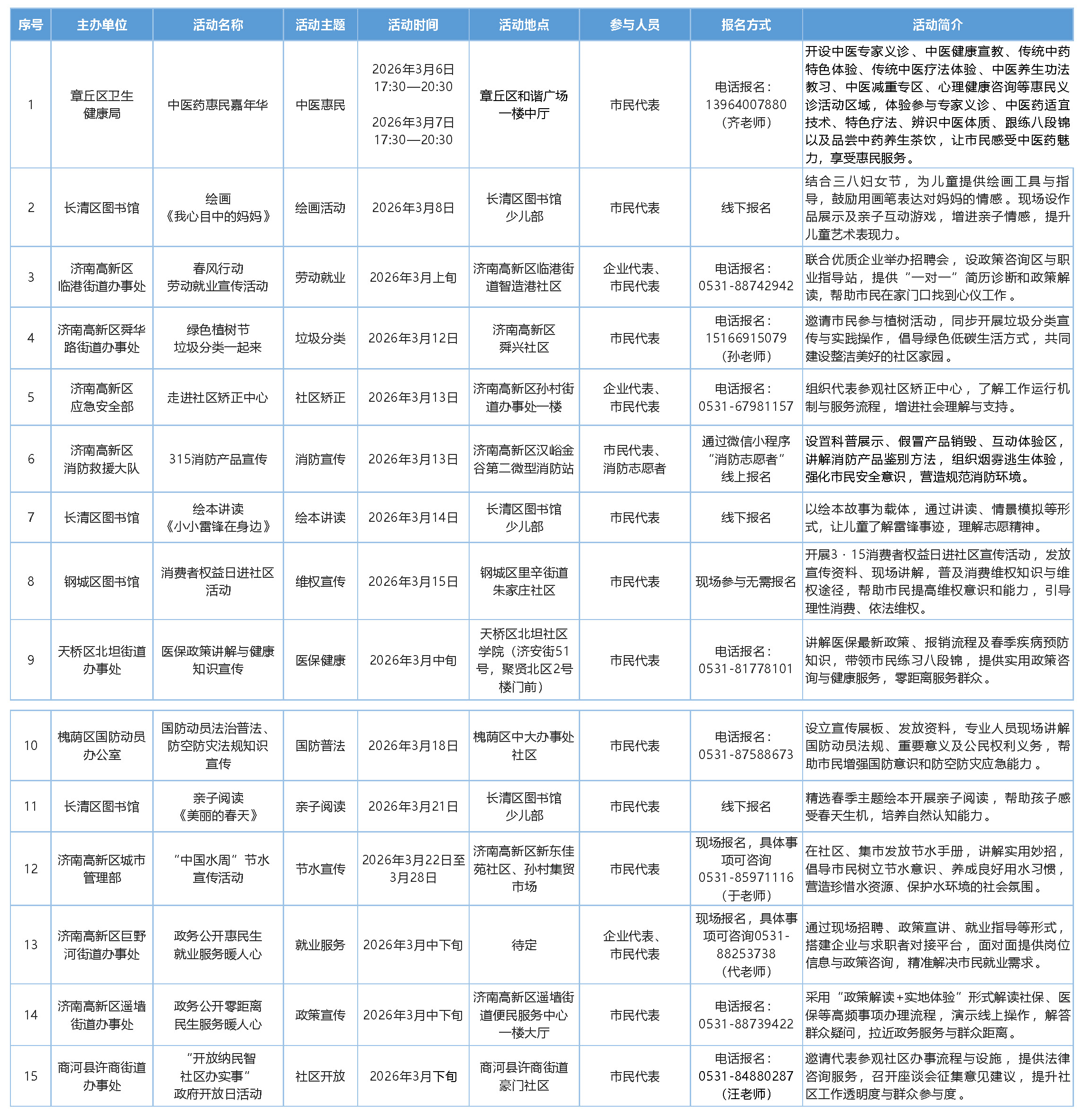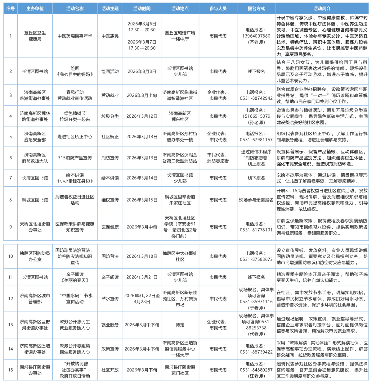 濟(jì)南市2026年3月將舉辦“泉誠(chéng)公開(kāi) 政府開(kāi)放”系列活動(dòng),涵蓋中醫(yī)惠民、勞動(dòng)就業(yè)、垃圾分類(lèi)、消防宣傳、醫(yī)保健康、政策宣傳等領(lǐng)域,歡迎您來(lái)參加。