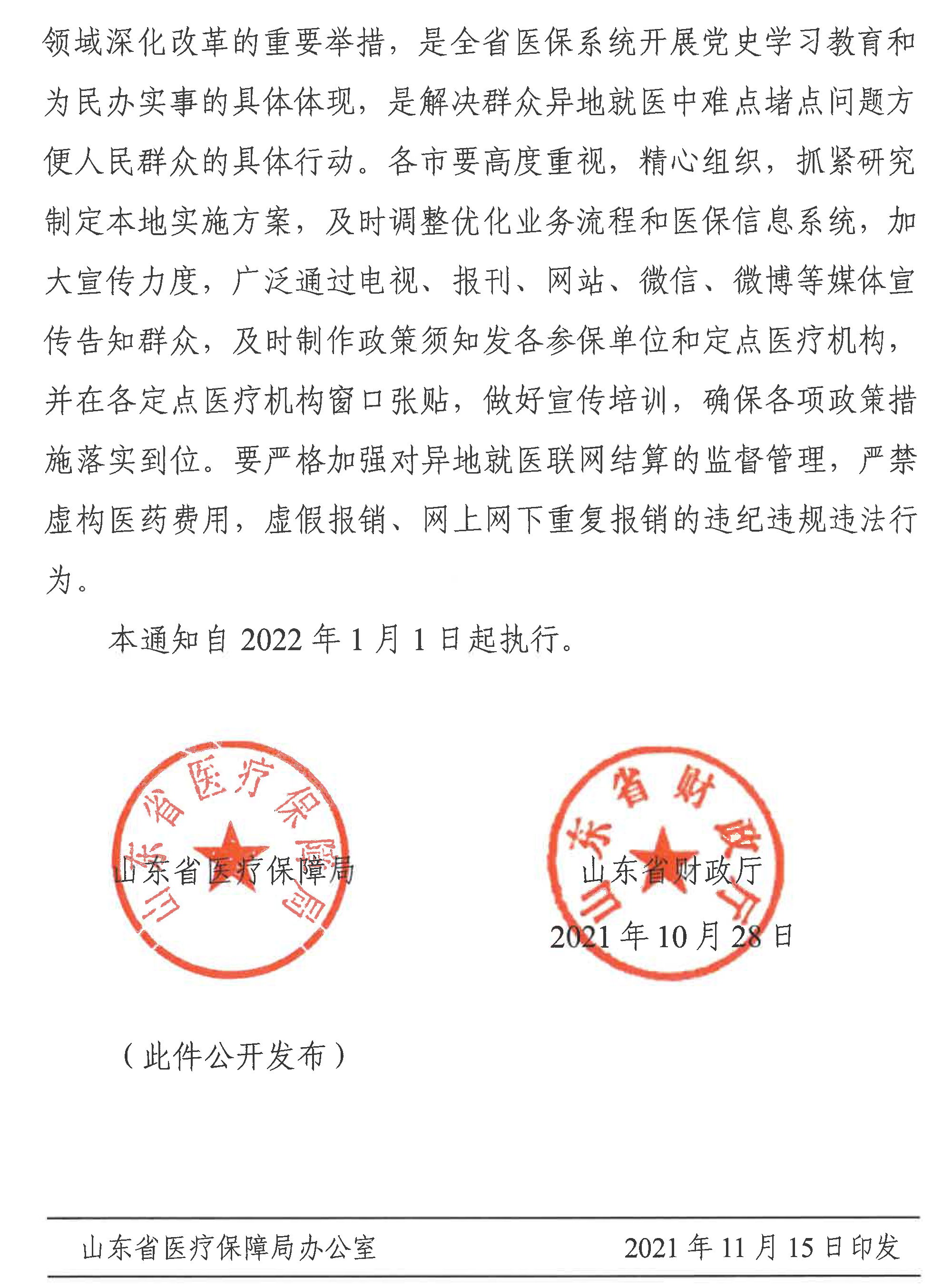 濟南市醫(yī)療保障局 濟南市財政局關(guān)于轉(zhuǎn)發(fā)魯醫(yī)保發(fā)〔2021〕46號文件進一步做好參保人員異地就醫(yī)有關(guān)工作的通知
