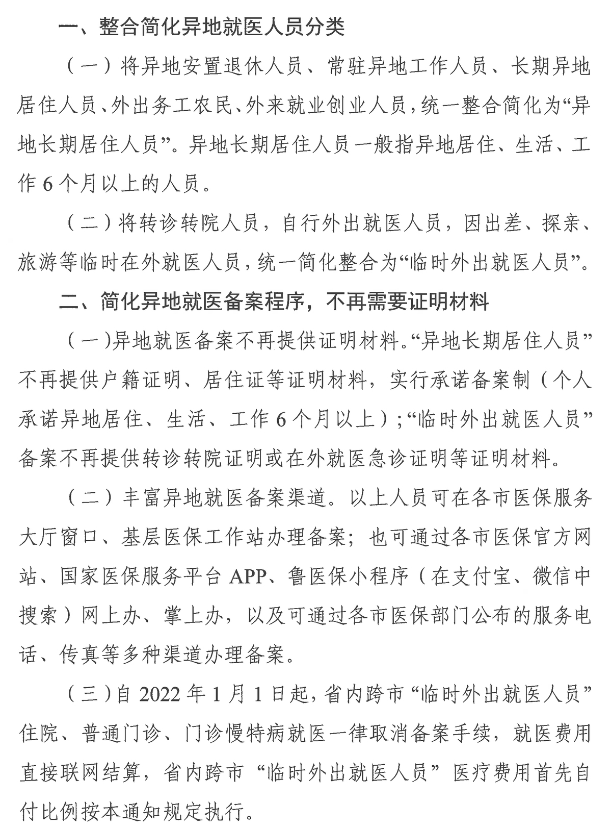 一、取消參加我市基本醫(yī)療保險的“異地長期居住人員”和“臨時外出就醫(yī)人員”異地就醫(yī)定點醫(yī)療機構(gòu)等級、數(shù)量等限制。