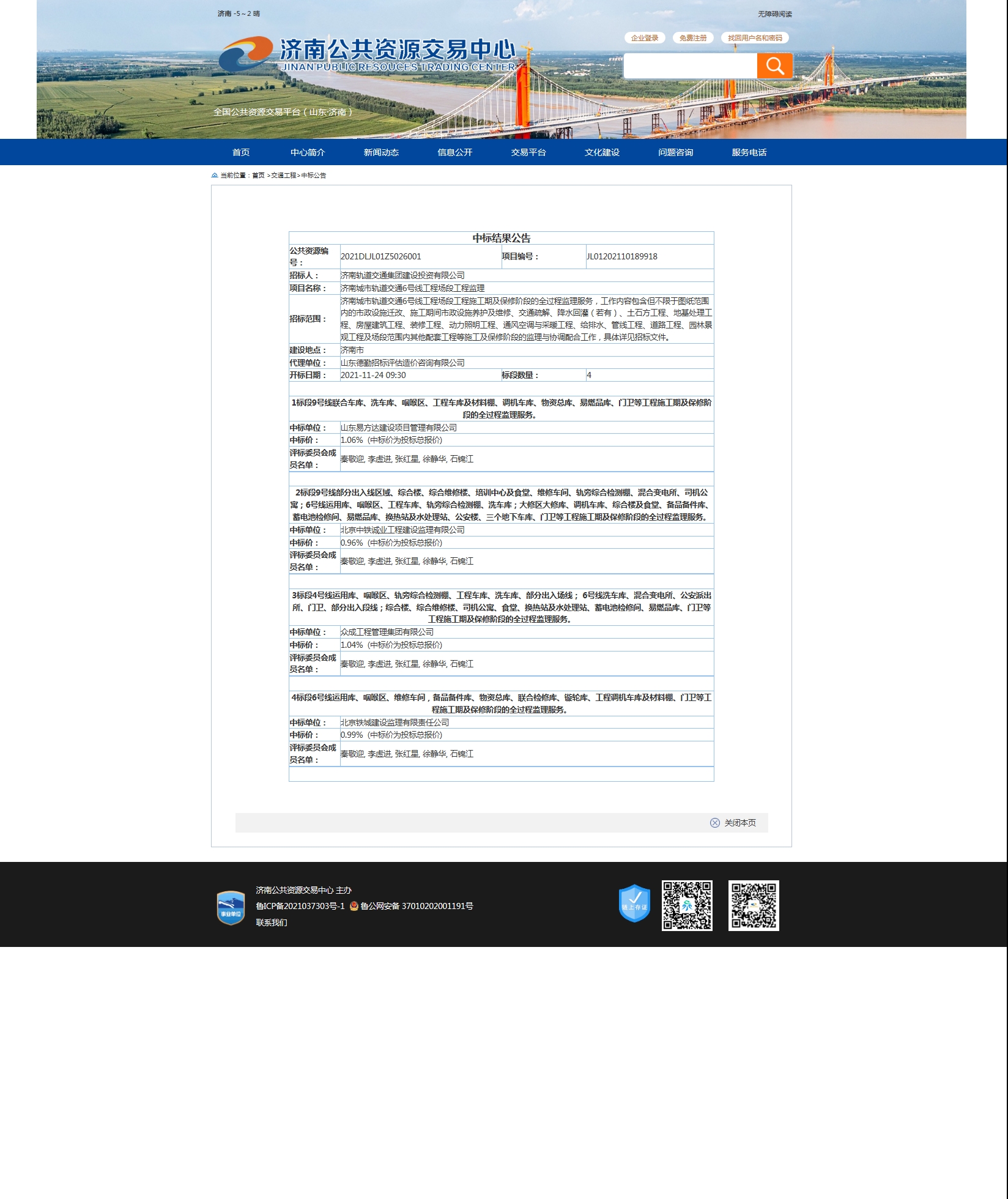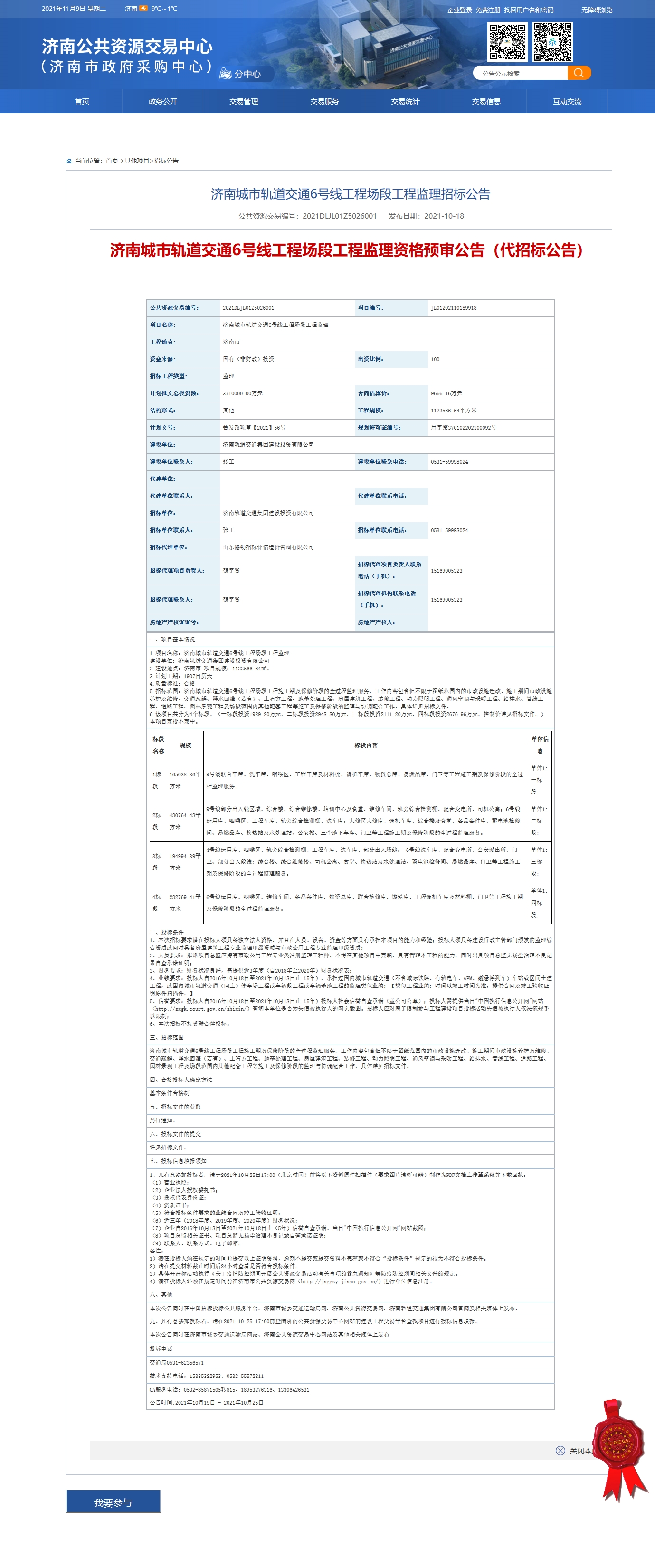 【招標(biāo)投標(biāo)信息】濟(jì)南城市軌道交通6號(hào)線工程場(chǎng)段工程監(jiān)理招標(biāo)投標(biāo)信息