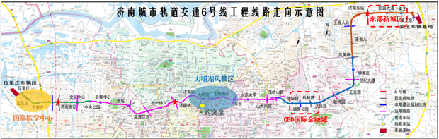濟南城市軌道交通6號線工程線路走向示意圖