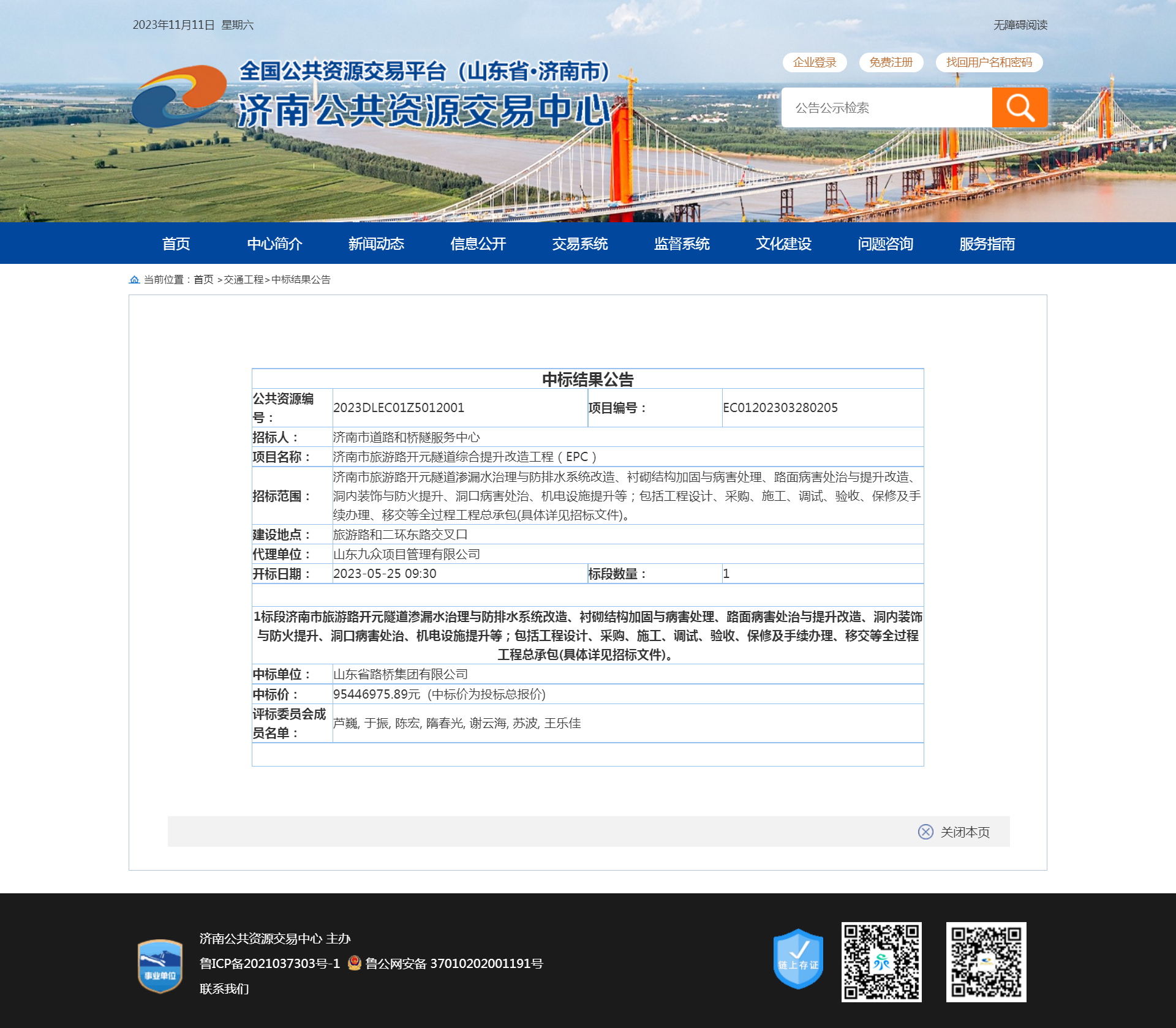 【招標(biāo)投標(biāo)信息】濟(jì)南市旅游路開元隧道綜合提升改造工程項(xiàng)目招標(biāo)投標(biāo)信息匯總