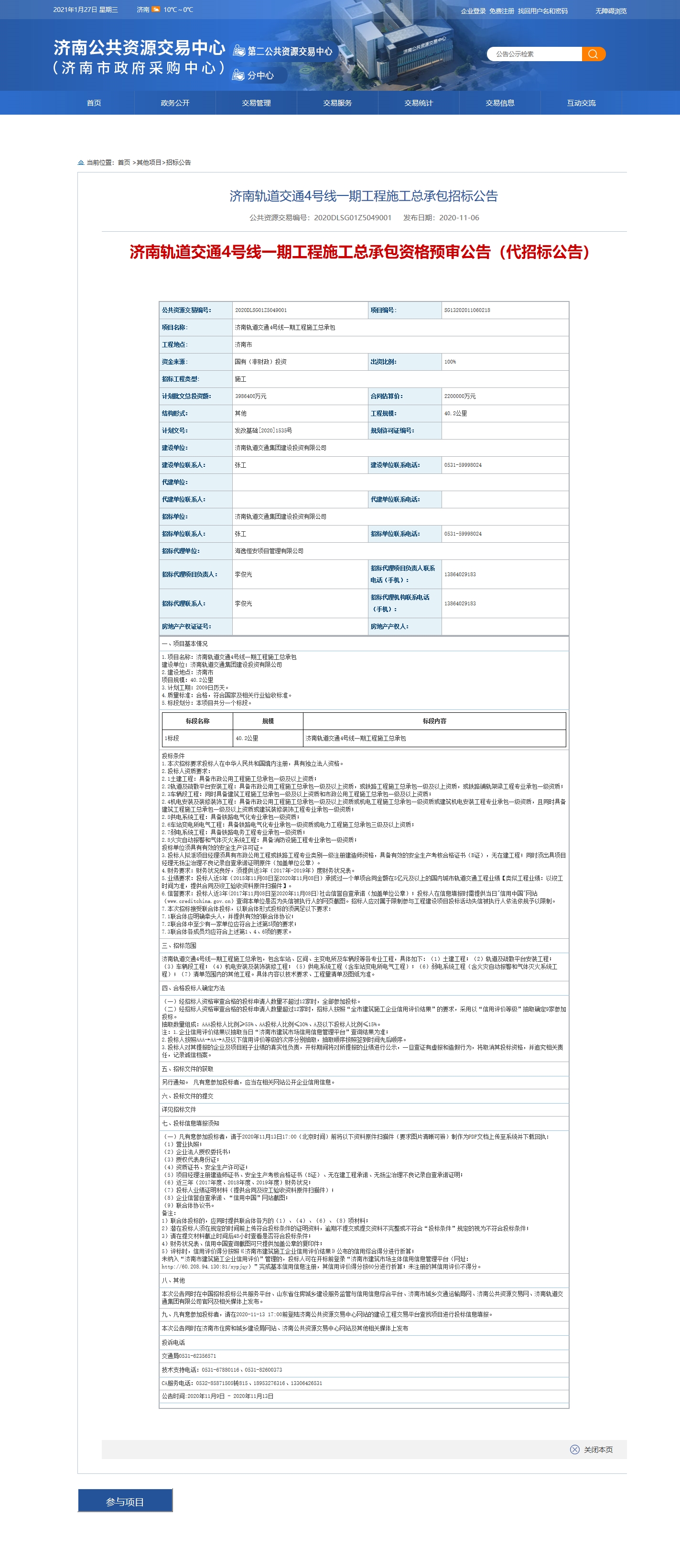 【批準(zhǔn)結(jié)果信息】濟(jì)南軌道交通4號(hào)線一期工程項(xiàng)目招標(biāo)公告