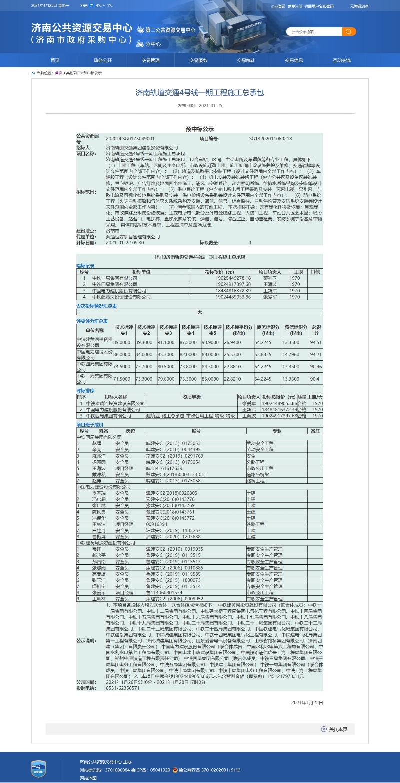 【批準(zhǔn)結(jié)果信息】濟(jì)南軌道交通4號線一期工程項目中標(biāo)人預(yù)公示 發(fā)布日期:2023-12-01 16:20 信息來源:濟(jì)南市人民政府辦公廳 瀏覽次數(shù):次 字體:【 默認(rèn) 大 超大 】 【打印本頁】 【關(guān)閉窗口】
