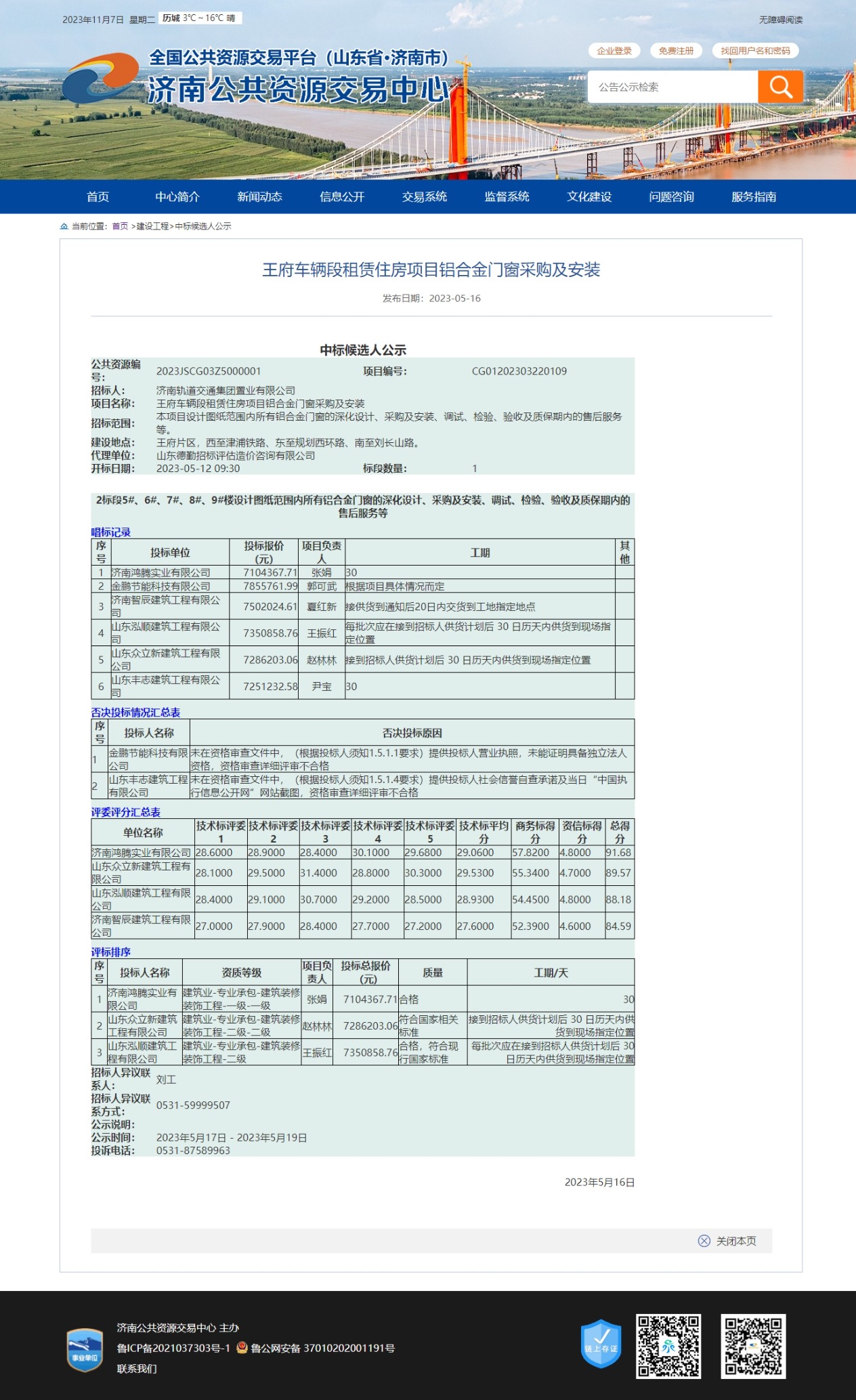 【招標(biāo)投標(biāo)信息】王府車輛段租賃住房項(xiàng)目招標(biāo)投標(biāo)信息(鋁合金)