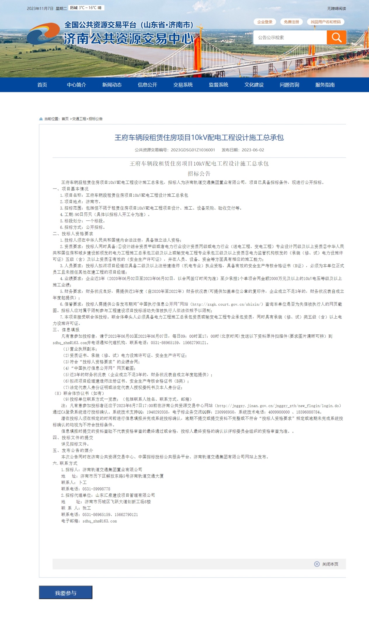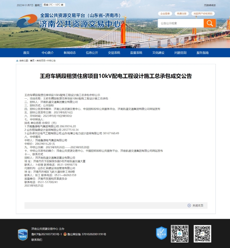 【招標投標信息】王府車輛段租賃住房項目招標投標信息(配電總包) 發(fā)布日期:2023-12-01 16:49 信息來源:濟南市人民政府辦公廳 瀏覽次數:次 字體:【 默認 大 超大 】 【打印本頁】 【關閉窗口】