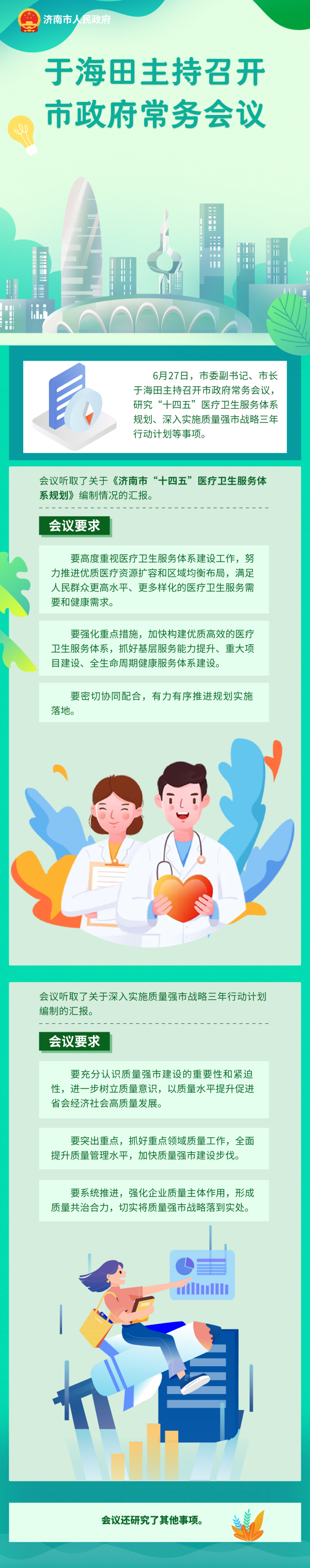 6月27日,市委副書記、市長(zhǎng)于海田主持召開市政府常務(wù)會(huì)議,研究“十四五”醫(yī)療衛(wèi)生服務(wù)體系規(guī)劃、深入實(shí)施質(zhì)量強(qiáng)市戰(zhàn)略三年行動(dòng)計(jì)劃等事項(xiàng)。