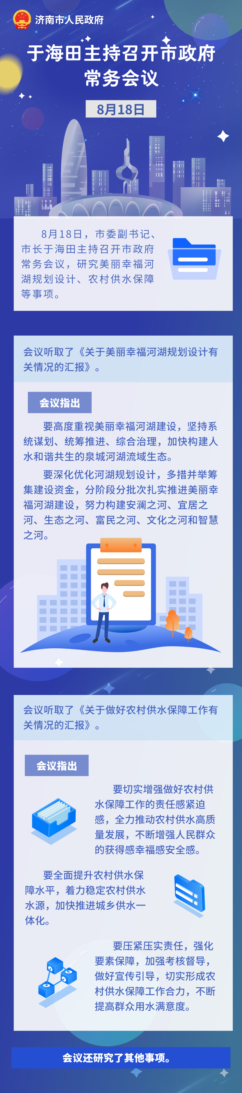 8月18日,市委副書記、市長(zhǎng)于海田主持召開市政府常務(wù)會(huì)議,研究美麗幸福河湖規(guī)劃設(shè)計(jì)、農(nóng)村供水保障等事項(xiàng)。