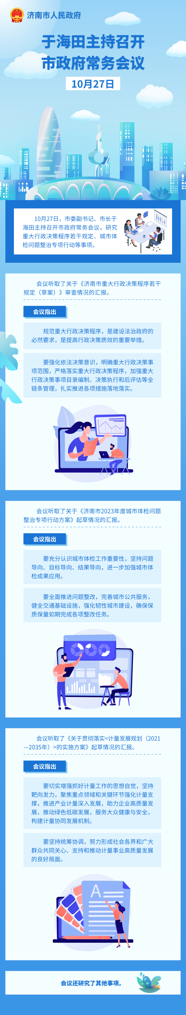 10月27日,市委副書記、市長于海田主持召開市政府常務(wù)會議,研究重大行政決策程序若干規(guī)定、城市體檢問題整治專項行動等事項。