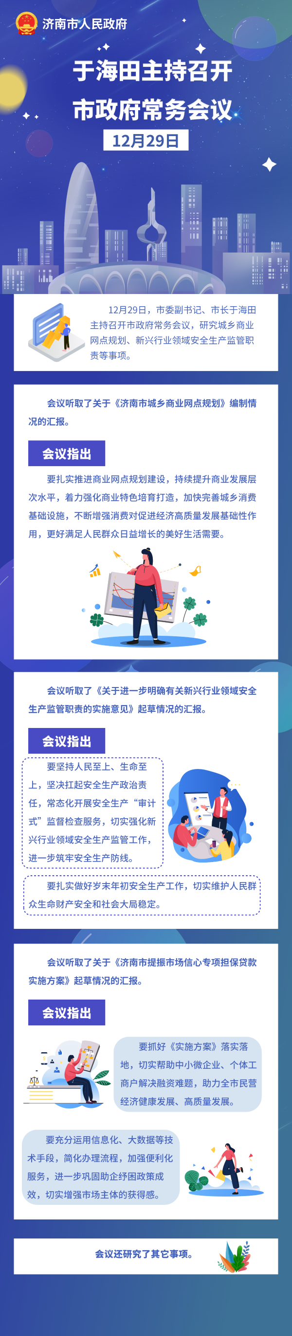 12月29日,市委副書記、市長于海田主持召開市政府常務(wù)會議,研究城鄉(xiāng)商業(yè)網(wǎng)點(diǎn)規(guī)劃、新興行業(yè)領(lǐng)域安全生產(chǎn)監(jiān)管職責(zé)等事項(xiàng)。
