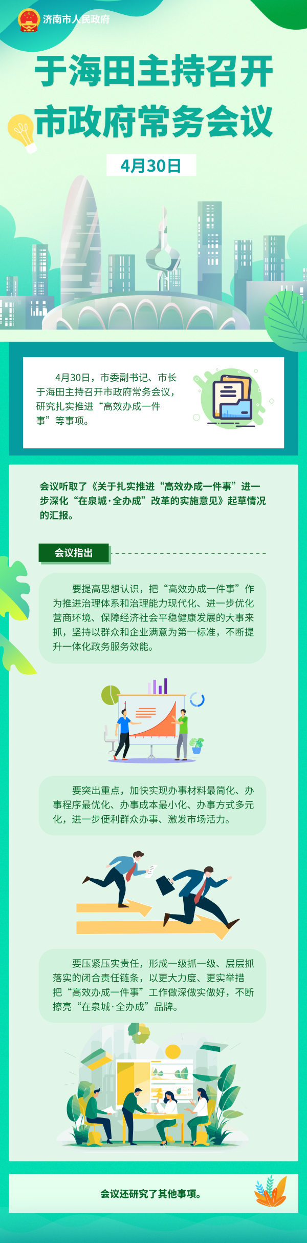 4月30日,市委副書記、市長于海田主持召開市政府常務(wù)會議,研究扎實推進“高效辦成一件事”等事項。