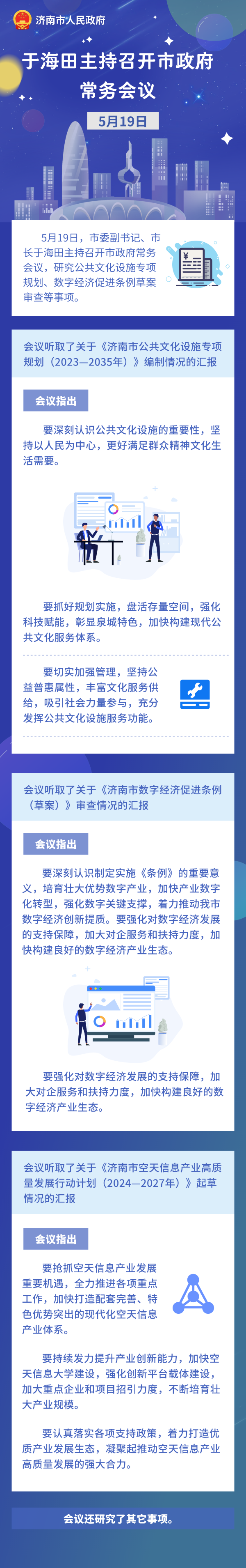 5月19日,市委副書(shū)記、市長(zhǎng)于海田主持召開(kāi)市政府常務(wù)會(huì)議,研究公共文化設(shè)施專項(xiàng)規(guī)劃、數(shù)字經(jīng)濟(jì)促進(jìn)條例草案審查等事項(xiàng)。