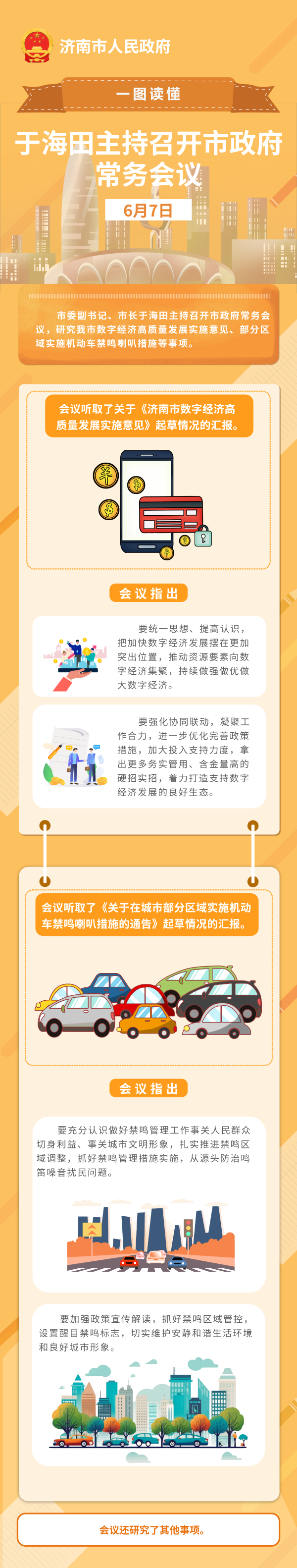 6月7日,市委副書記、市長于海田主持召開市政府常務(wù)會議,研究我市數(shù)字經(jīng)濟(jì)高質(zhì)量發(fā)展實施意見、部分區(qū)域?qū)嵤C(jī)動車禁鳴喇叭措施等事項。