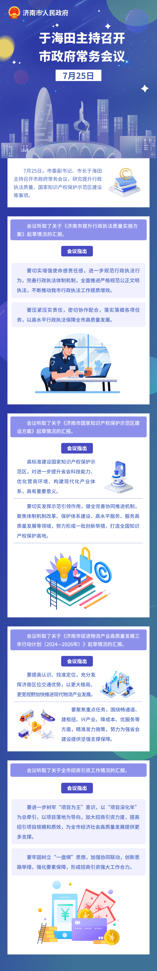 7月25日,市委副書記、市長于海田主持召開市政府常務會議,研究提升行政執(zhí)法質量、國家知識產權保護示范區(qū)建設等事項。