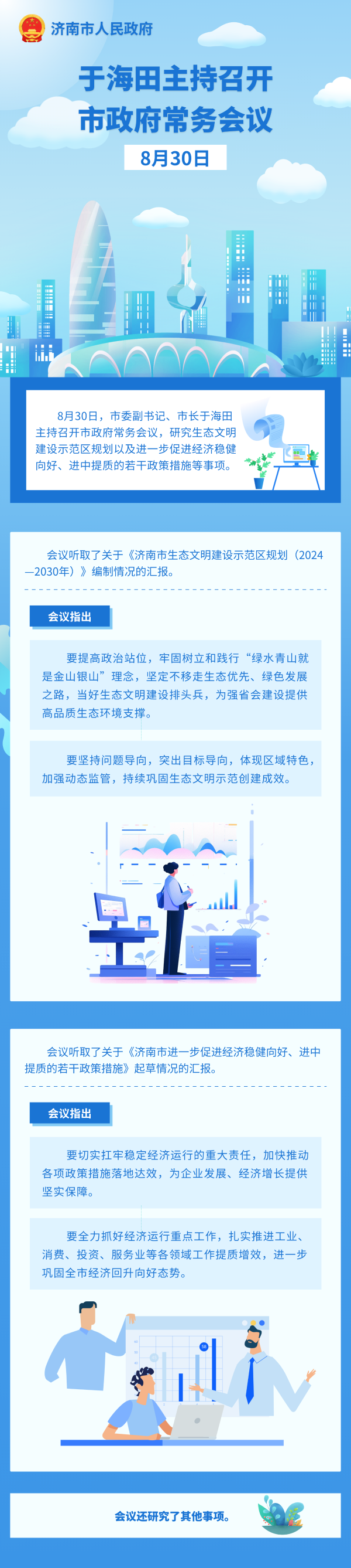8月30日,市委副書記、市長于海田主持召開市政府常務(wù)會議,研究生態(tài)文明建設(shè)示范區(qū)規(guī)劃以及進一步促進經(jīng)濟穩(wěn)健向好、進中提質(zhì)的若干政策措施等事項。