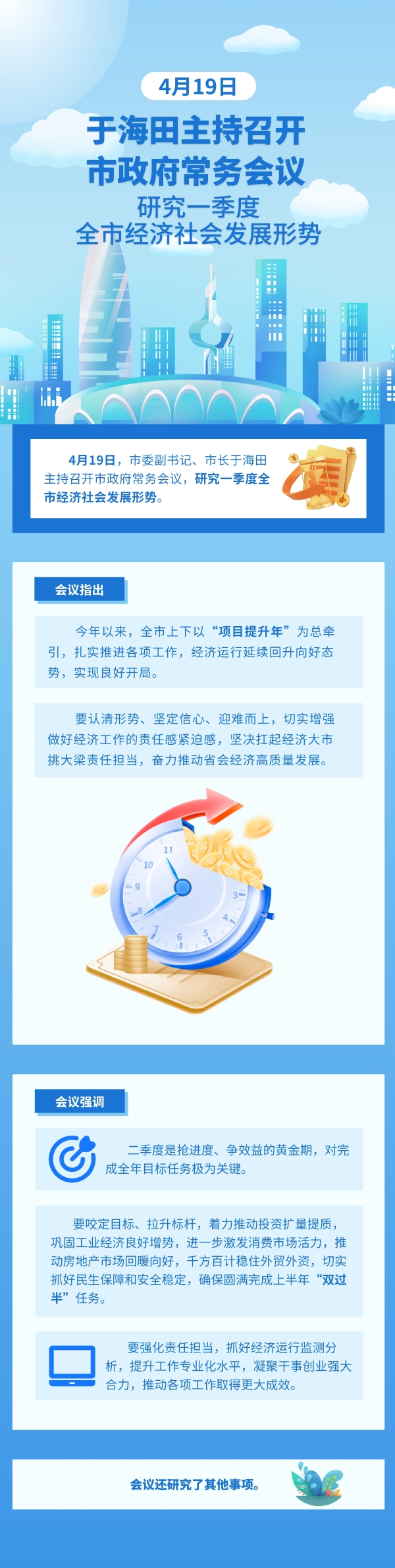 4月19日,市委副書記、市長(zhǎng)于海田主持召開市政府常務(wù)會(huì)議,研究一季度全市經(jīng)濟(jì)社會(huì)發(fā)展形勢(shì)。