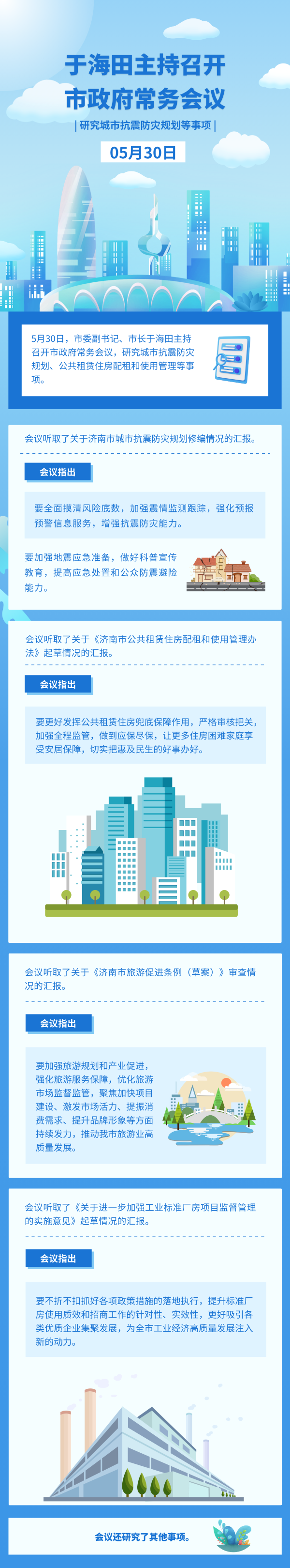 5月30日,市委副書記、市長于海田主持召開市政府常務會議,研究城市抗震防災規(guī)劃、公共租賃住房配租和使用管理等事項。