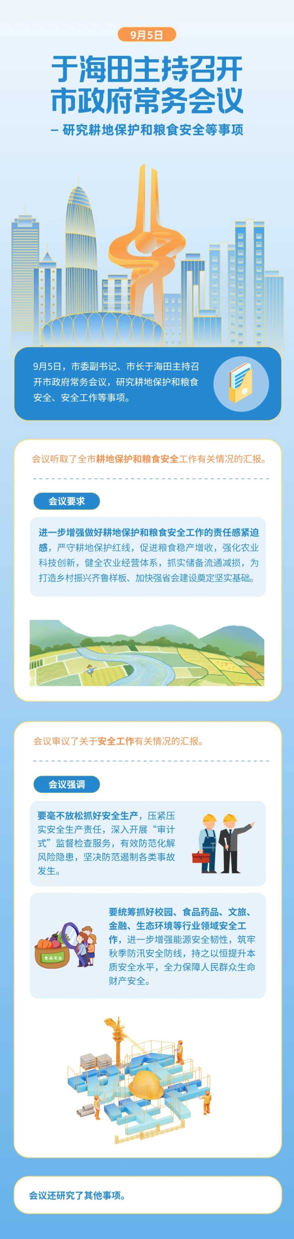 9月5日,市委副書記、市長于海田主持召開市政府常務(wù)會議,研究耕地保護和糧食安全、安全工作等事項。