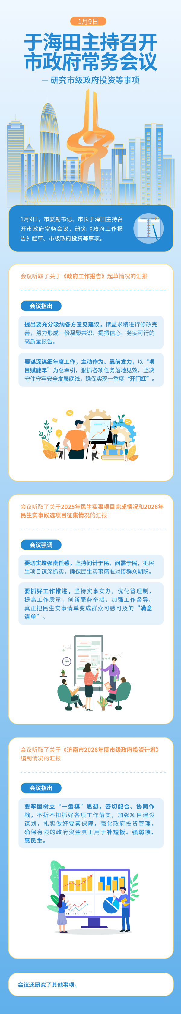 1月9日,市委副書記、市長于海田主持召開市政府常務(wù)會議,研究《政府工作報告》起草、市級政府投資等事項。