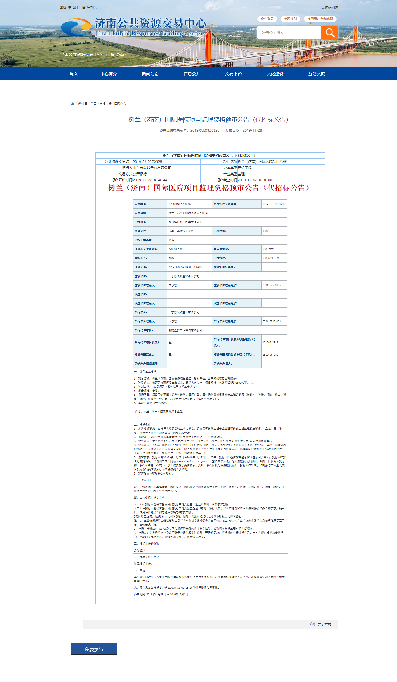 樹蘭(濟(jì)南)國(guó)際醫(yī)院項(xiàng)目監(jiān)理資格預(yù)審公告(代招標(biāo)公告)