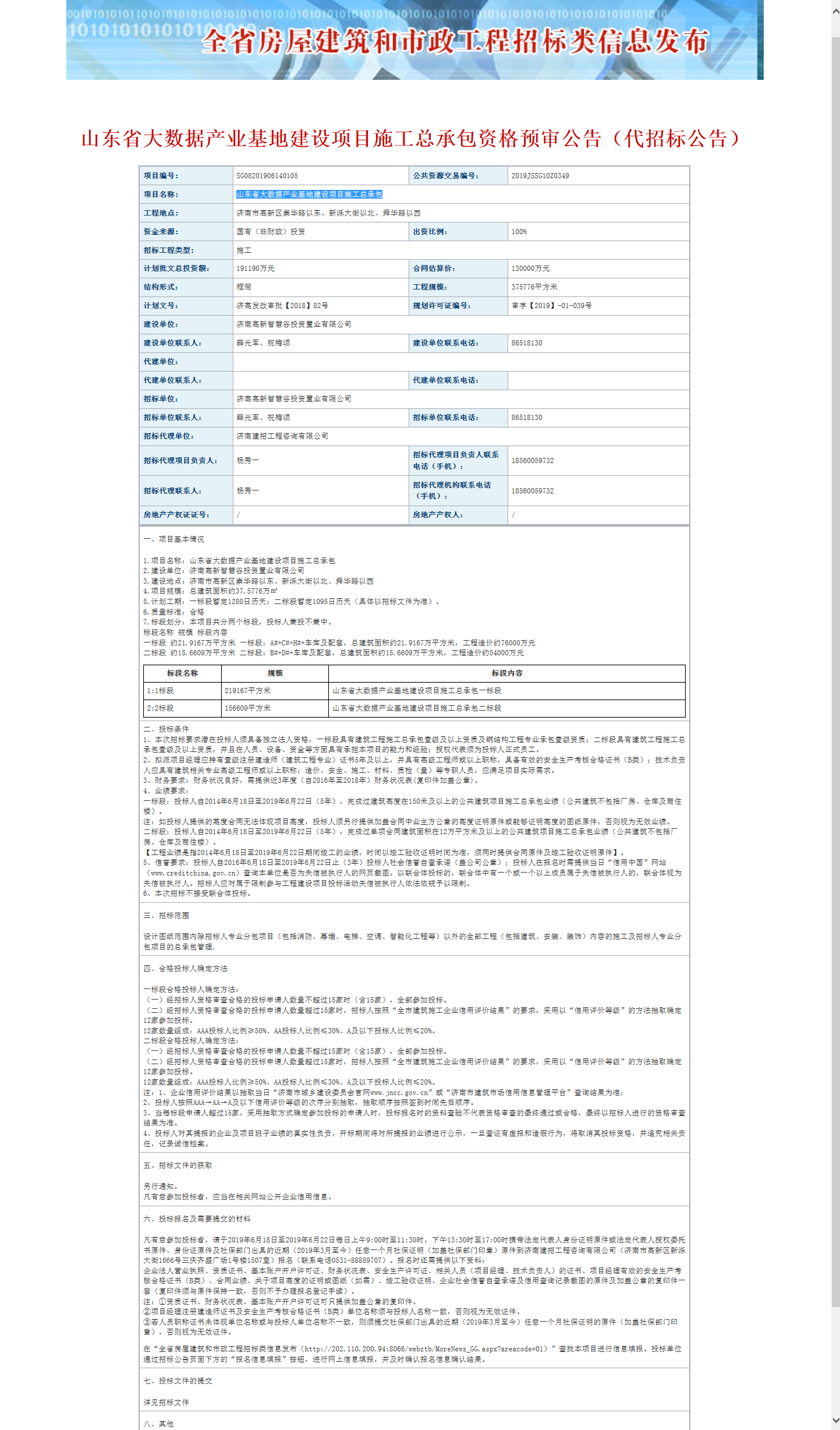 山東省大數(shù)據(jù)產(chǎn)業(yè)基地建設(shè)項目施工總承包招標(biāo)公告