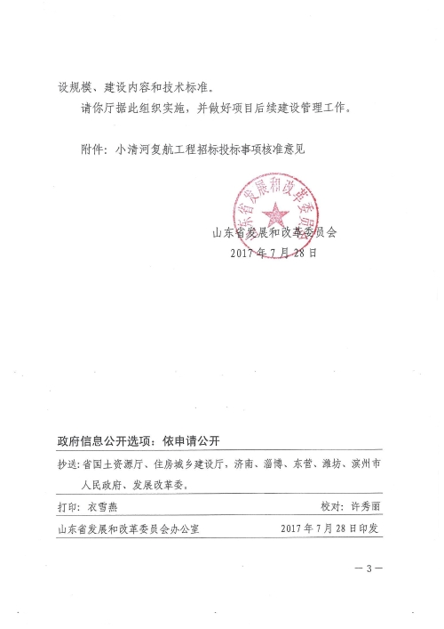 小清河復(fù)航工程的立項(xiàng)批復(fù) 發(fā)布日期:2021-12-13 10:19 信息來源:濟(jì)南市政府門戶網(wǎng)站 瀏覽次數(shù):次 字體:【 默認(rèn) 大 超大 】 【打印本頁】 【關(guān)閉窗口】