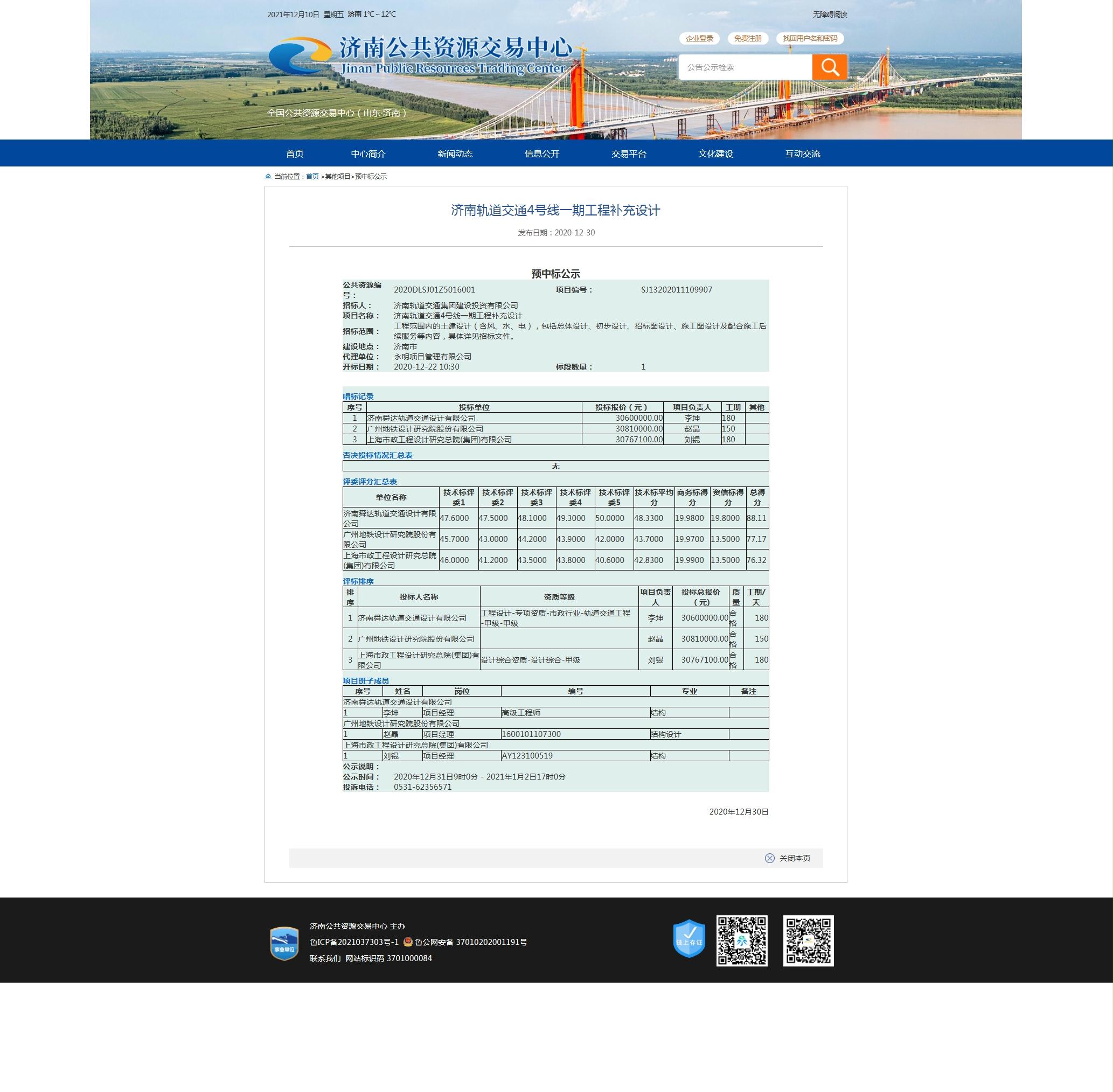 濟南軌道交通4號線一期工程補充設(shè)計預(yù)中標公示 發(fā)布日期:2021-12-13 11:24 信息來源:濟南市政府門戶網(wǎng)站 瀏覽次數(shù):次 字體:【 默認 大 超大 】 【打印本頁】 【關(guān)閉窗口】