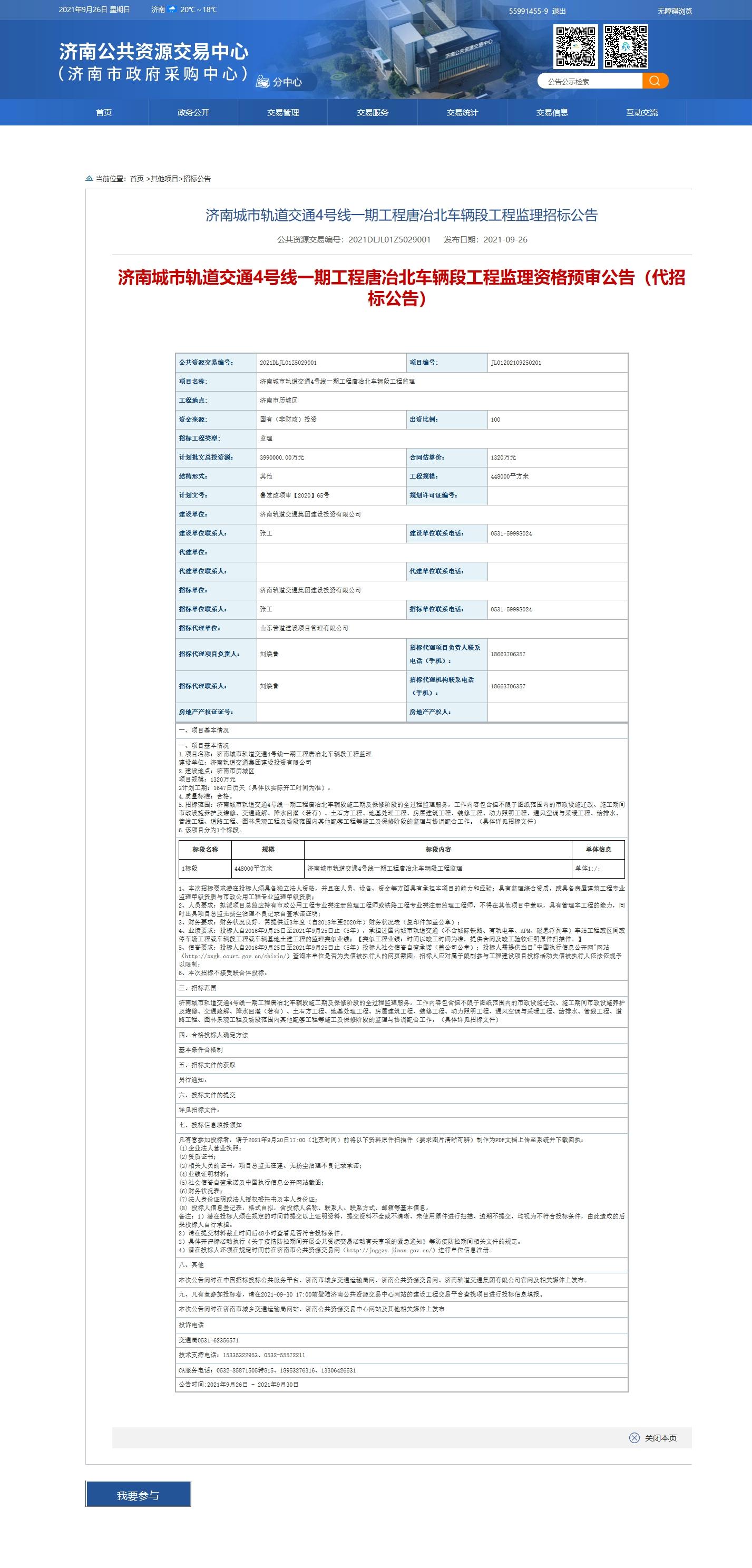 濟(jì)南軌道交通4號線一期工程唐冶北車輛段監(jiān)理招標(biāo)公告 發(fā)布日期:2021-12-13 11:26 信息來源:濟(jì)南市政府門戶網(wǎng)站 瀏覽次數(shù):次 字體:【 默認(rèn) 大 超大 】 【打印本頁】 【關(guān)閉窗口】
