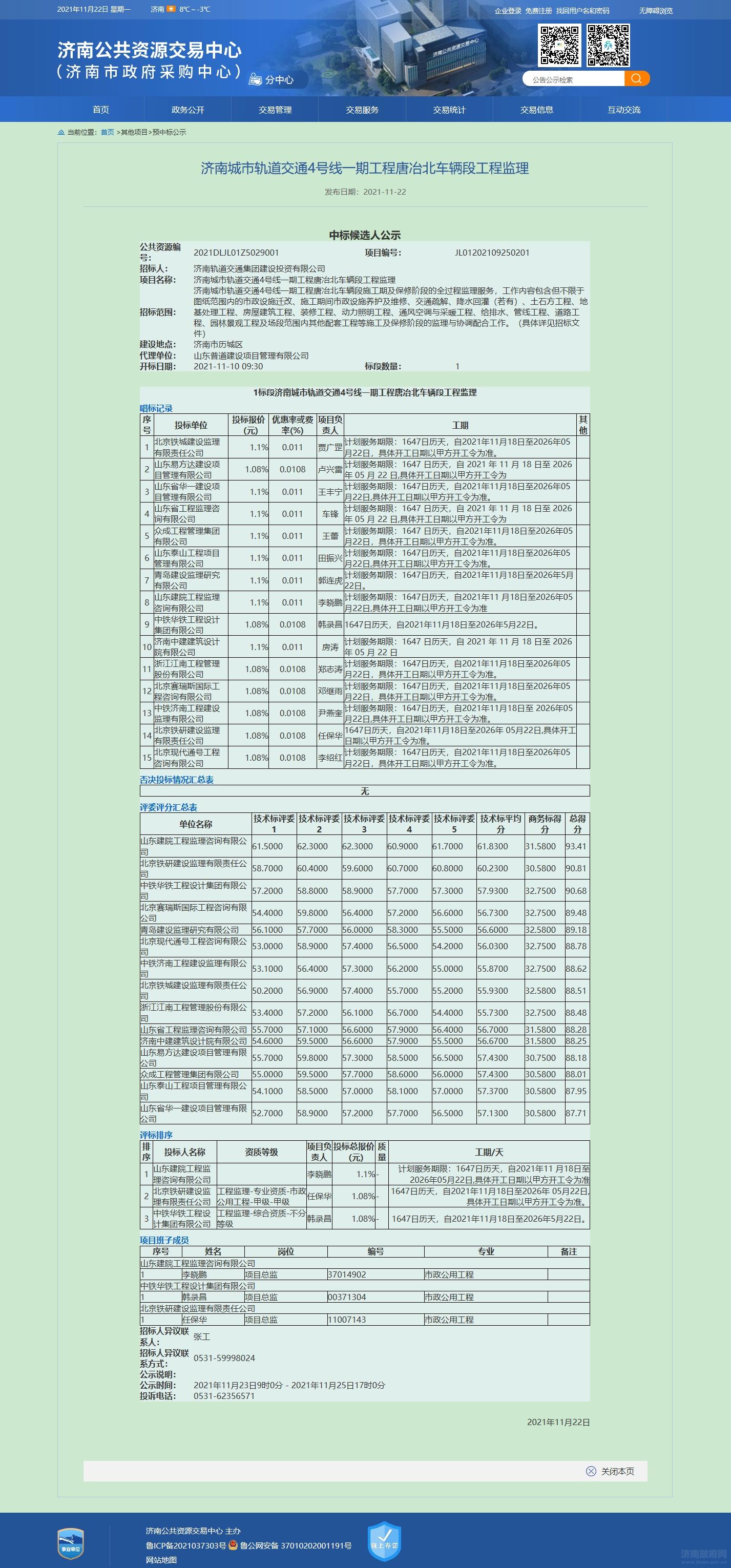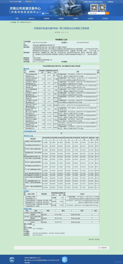 濟(jì)南軌道交通4號(hào)線一期工程唐冶北車輛段監(jiān)理預(yù)中標(biāo)公示