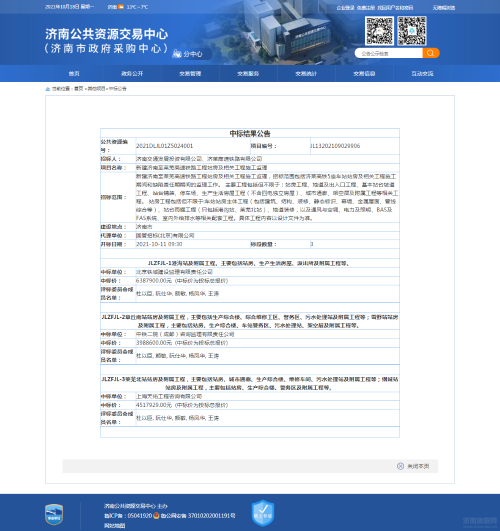 新建濟(jì)南至萊蕪高速鐵路工程站房及相關(guān)工程施工監(jiān)理中標(biāo)公告