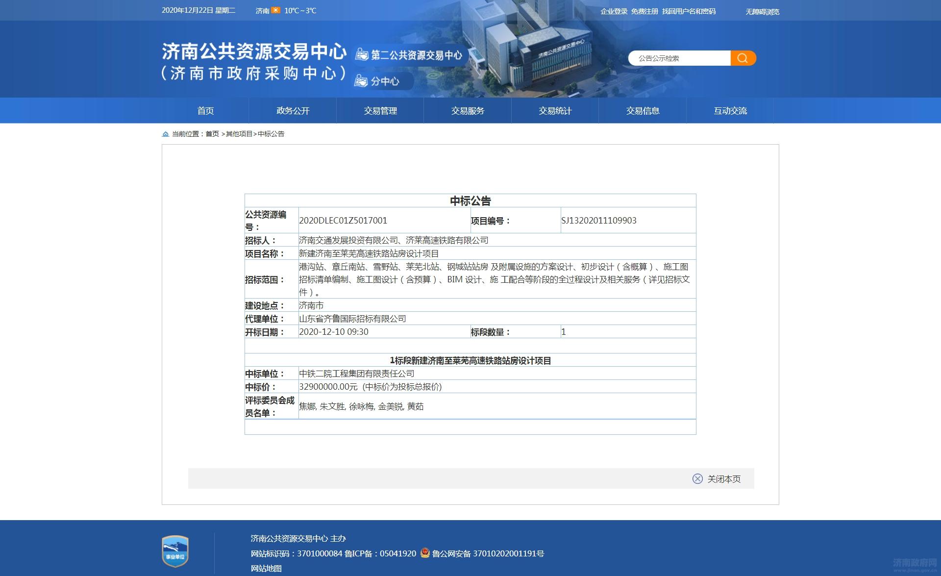 新建濟(jì)南至萊蕪高速鐵路站房設(shè)計(jì)中標(biāo)公告 發(fā)布日期:2021-12-13 11:57 信息來源:濟(jì)南市政府門戶網(wǎng)站 瀏覽次數(shù):次 字體:【 默認(rèn) 大 超大 】 【打印本頁(yè)】 【關(guān)閉窗口】