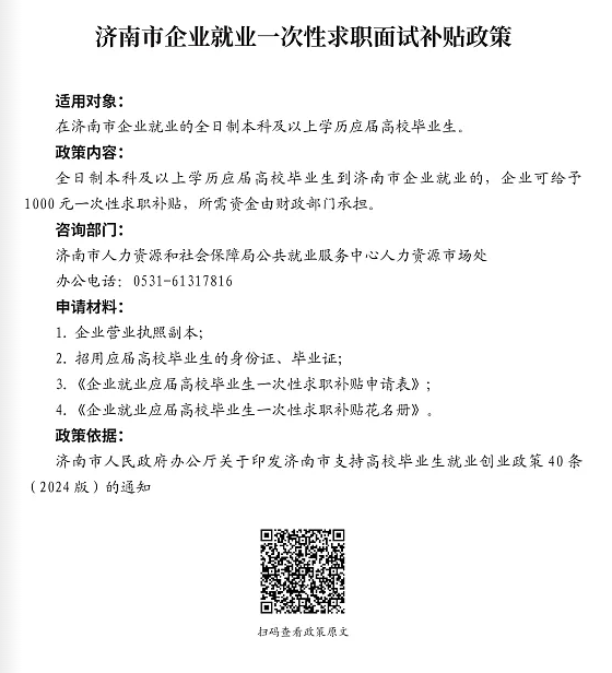 △濟南市企業(yè)就業(yè)一次性求職面試補貼政策 發(fā)布日期:2025-06-16 10:20 信息來源:濟南市投資促進局 瀏覽次數(shù):次 字體:【 默認 大 超大 】 【打印本頁】 【關閉窗口】