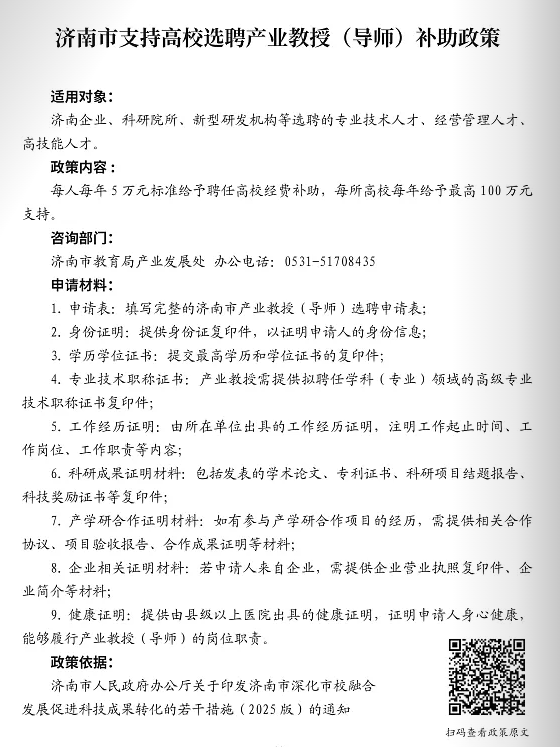 △濟(jì)南市支持高校選聘產(chǎn)業(yè)教授(導(dǎo)師)補(bǔ)助政策 發(fā)布日期:2025-06-16 10:19 信息來源:濟(jì)南市投資促進(jìn)局 瀏覽次數(shù):次 字體:【 默認(rèn) 大 超大 】 【打印本頁】 【關(guān)閉窗口】